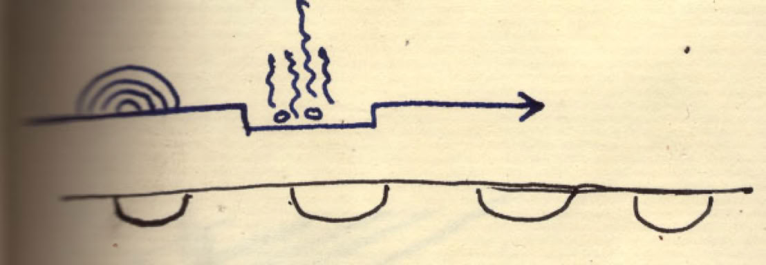 Above : ”Two Moons At the Edge of the Universe”. An early painting from the 1970s of the Sacred Fire experience. From 1975. Rocky Hill Connecticut. Watercolor on paper. Prints of this work are available.