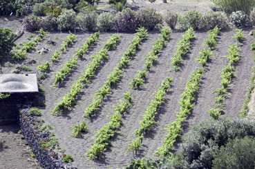 The vines in depressions are trained in low alberello (head-trained bush), consisting of two to four arms