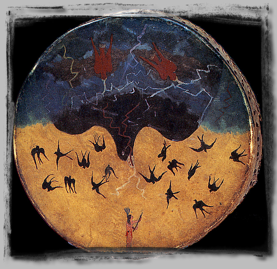 Not a painting. A photo of an eastern woodlands drum from around 1820. This captures the artists feeling perfectly.