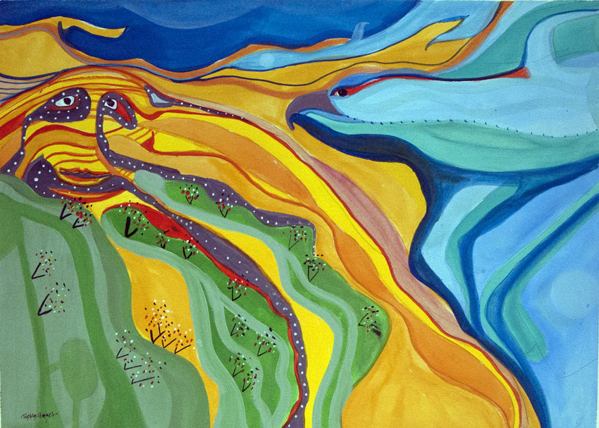 Turtle Heart works in a wide assortment of media. Oils, Acrylic and his favorite pigment medium is Windsor & Newton Gouache watecolors.