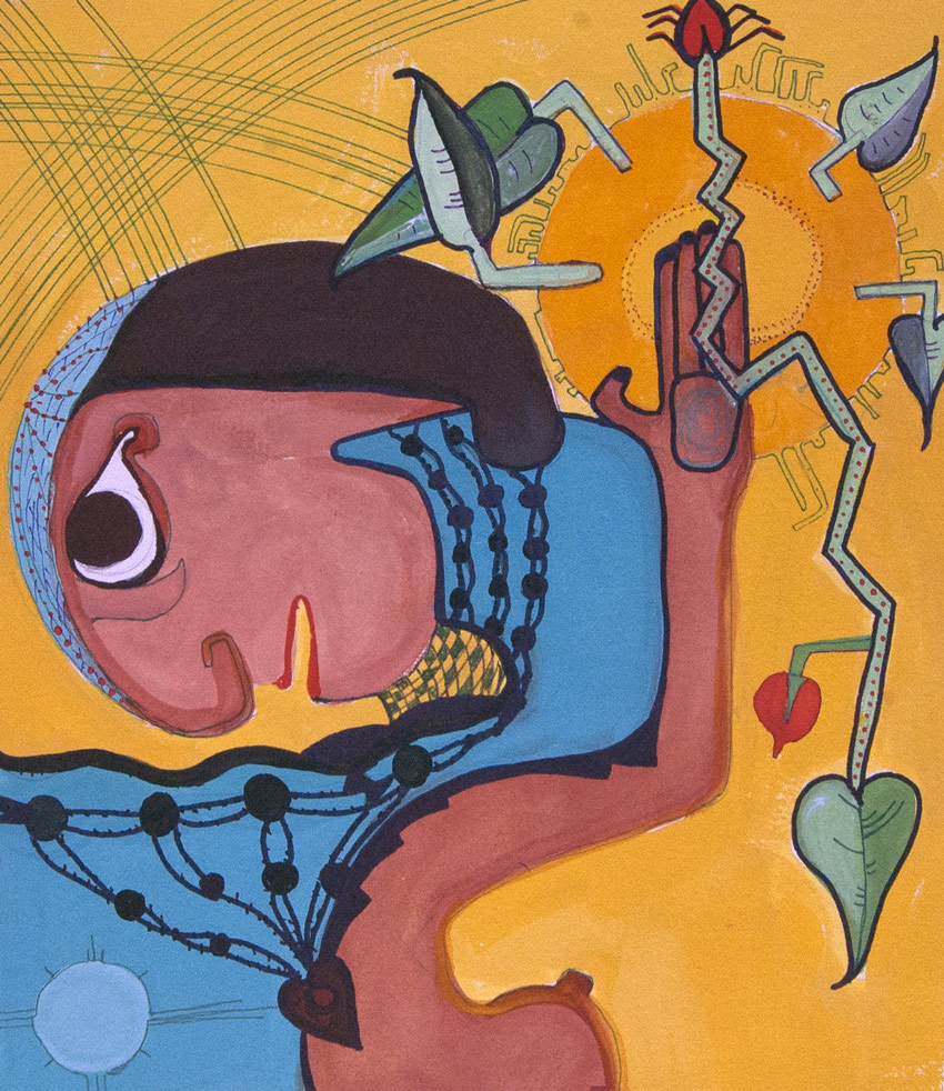 Turtle Heart works in a wide assortment of media. Oils, Acrylic and his favorite pigment medium is Windsor & Newton Gouache watecolors.