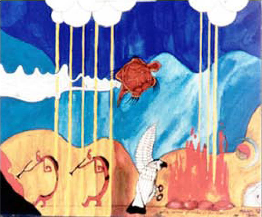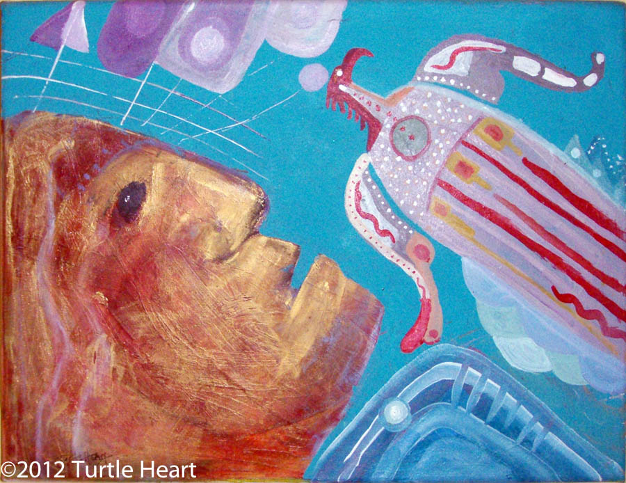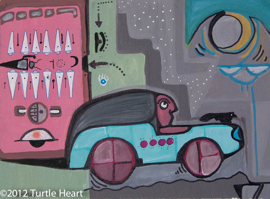 Turtle Heart works in a wide assortment of media. Oils, Acrylic and his favorite pigment medium is Windsor & Newton Gouache watecolors.